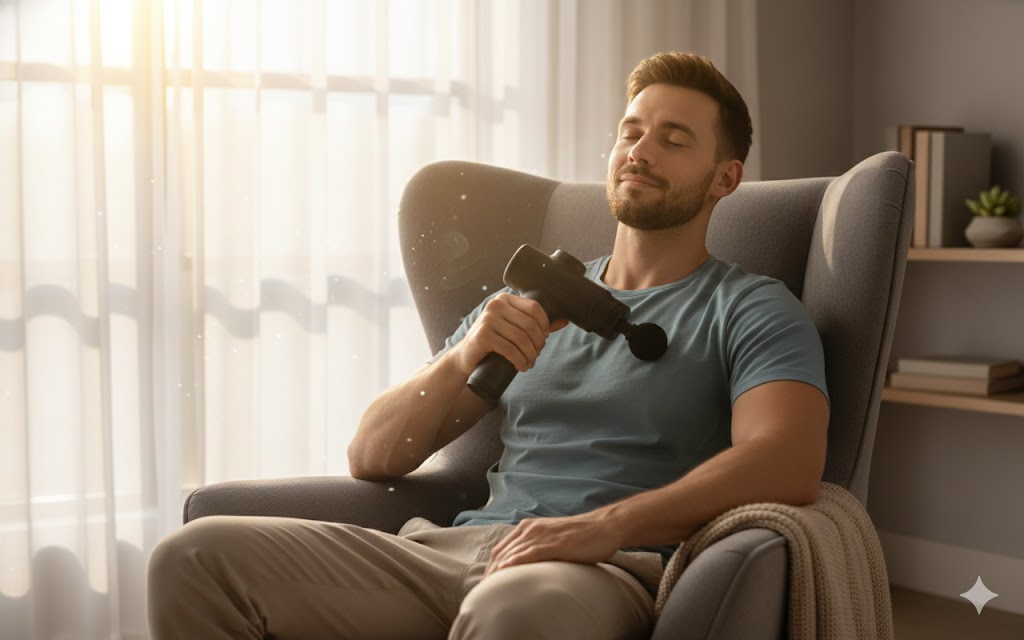 This massage gun delivers a powerful 12mm deep stroke that reaches tight and stiff muscles. It helps reduce soreness after work, workouts, or long sitting sessions. The vibration penetrates smoothly to loosen fascia layers. It creates a comfortable daily recovery routine for anyone who needs quick relief.